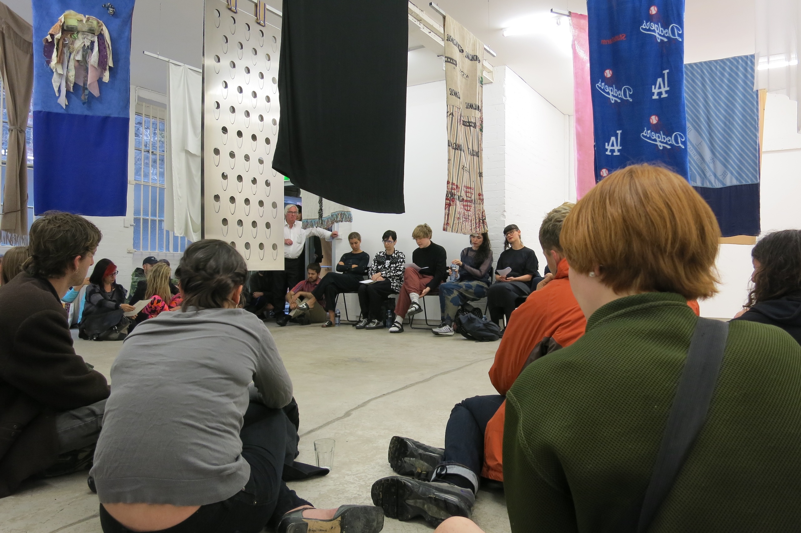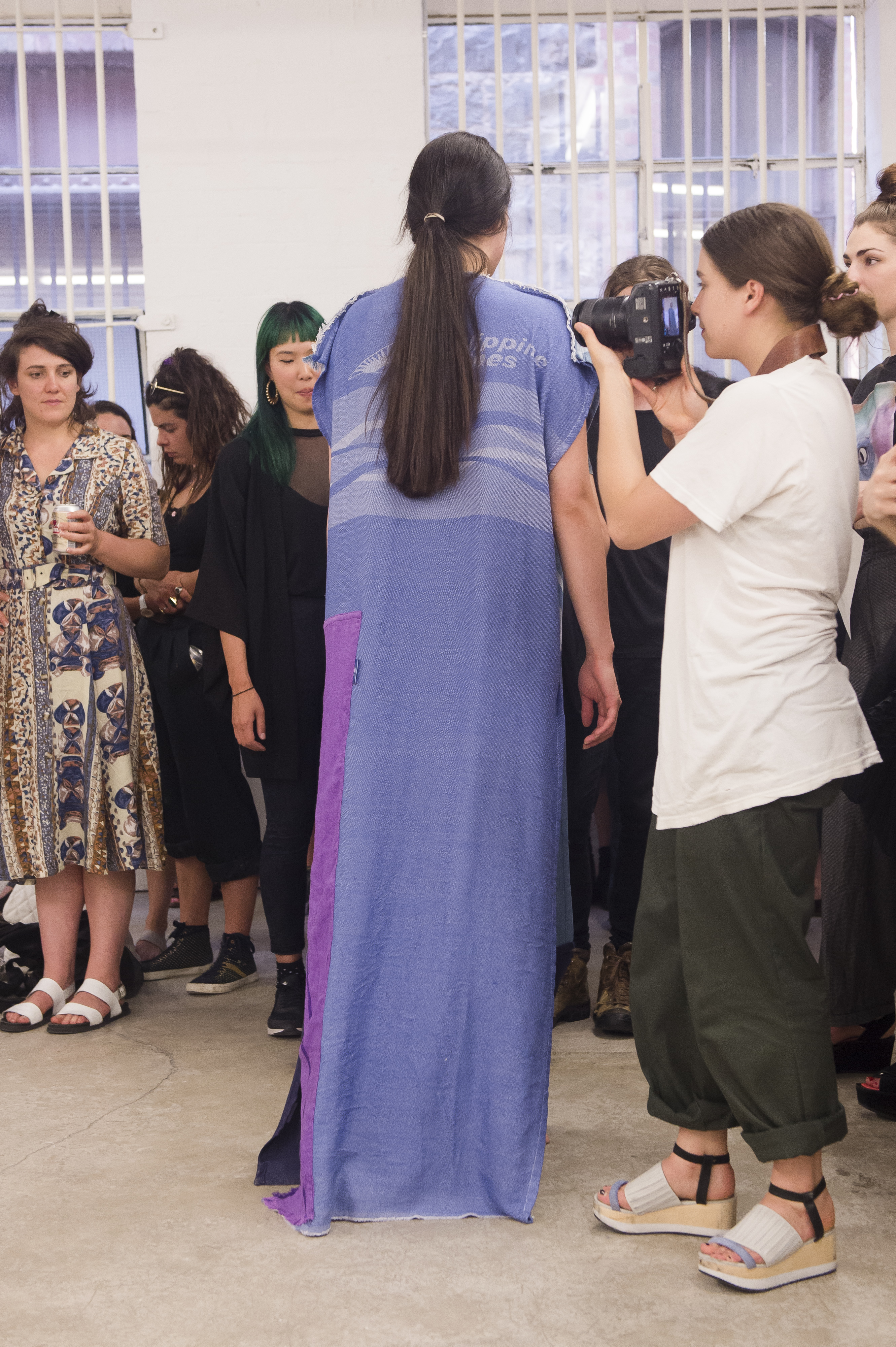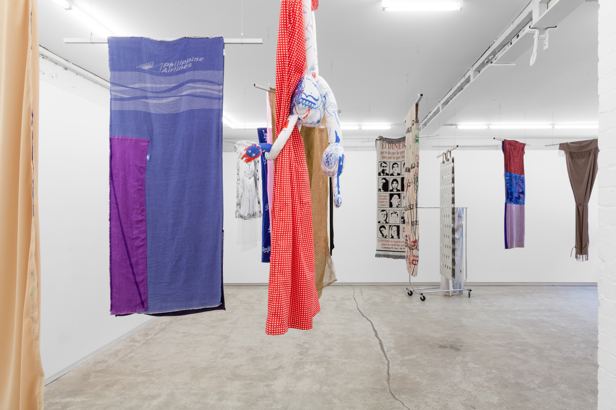Silly Canvas invites a selection of practitioners to create new work restricted to the parameters of two 70cm x 170cm rectangles of material attached to one another to form both flat dresses for a runway performance on the opening night and as static wall hangings for the duration of the exhibition. Silly Canvas looks at the most rudimentary of garment shapes: the sack dress. The form apes the easy, ocular objectives of a canvas as a worn “2D” tent. Quelling design’s usual goal, that of “fit,” the exhibition has set the dictatorial task of dealing with surface alone. The works are seen as a collection of worn canvases each imprinted with the designer’s attempt to influence and affect the blank-slate rectangular form.